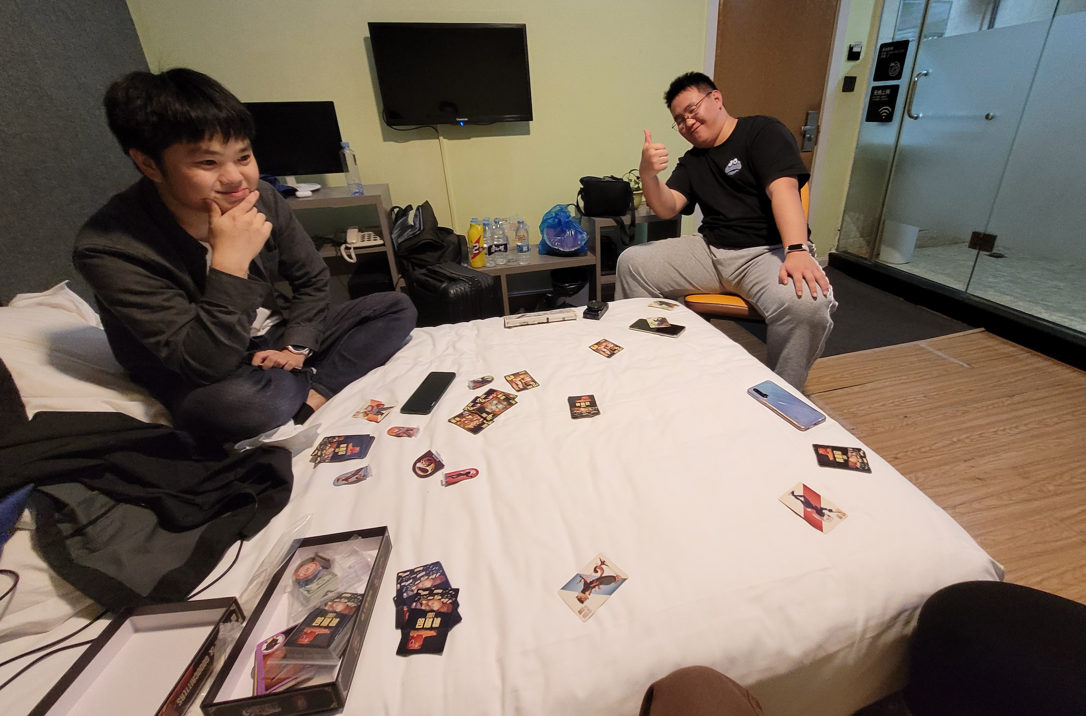 到了晚上雨还没停,但是我们也不饿,中午吃太多了。等雨停了再出去找吃的。这段时间就玩起了桌游。