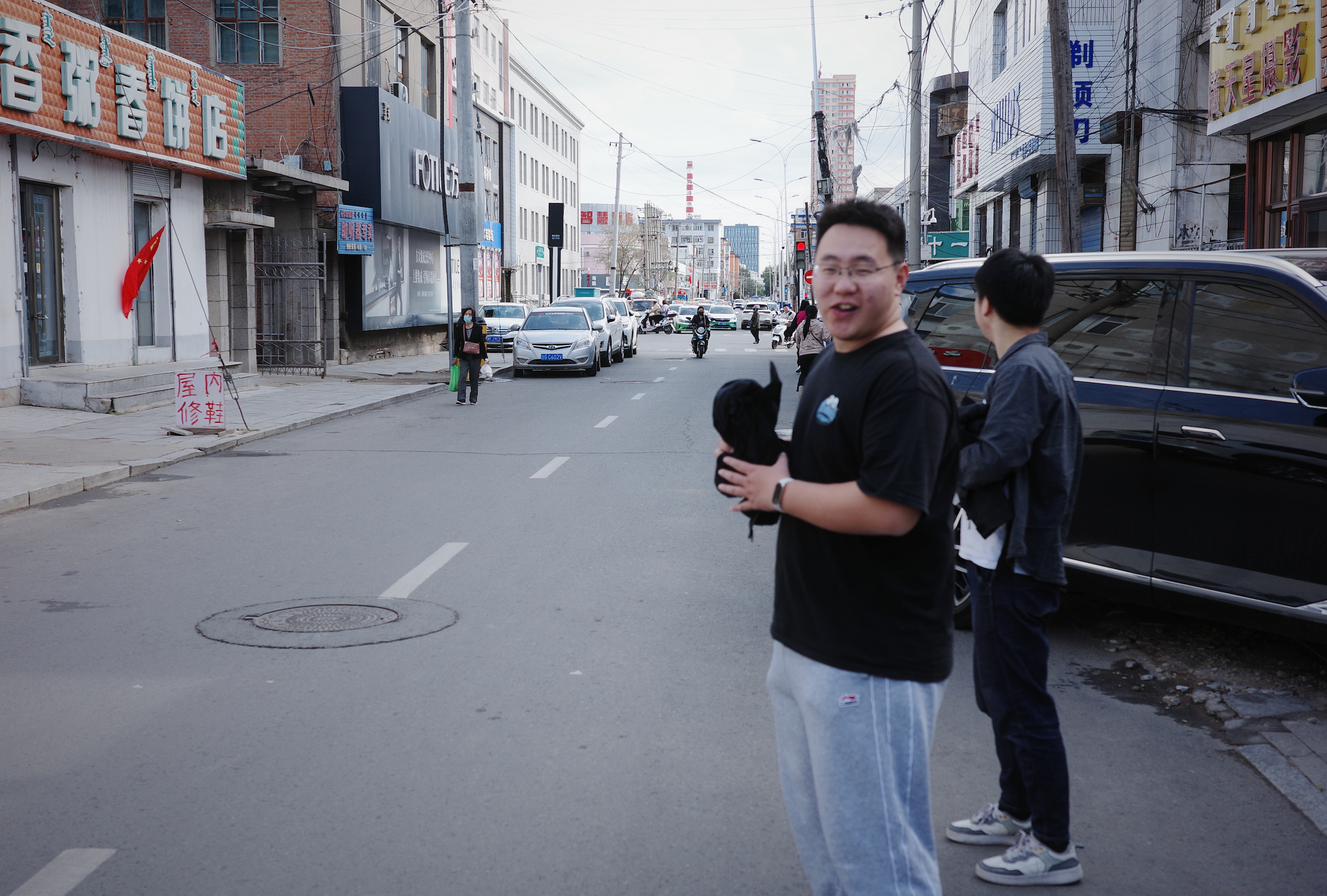 刚走到单位楼下小老弟就发现忘带手机,剩下三人在原地等他回去拿,此时胖子测试新租的黑卡,给我拍了一张照。