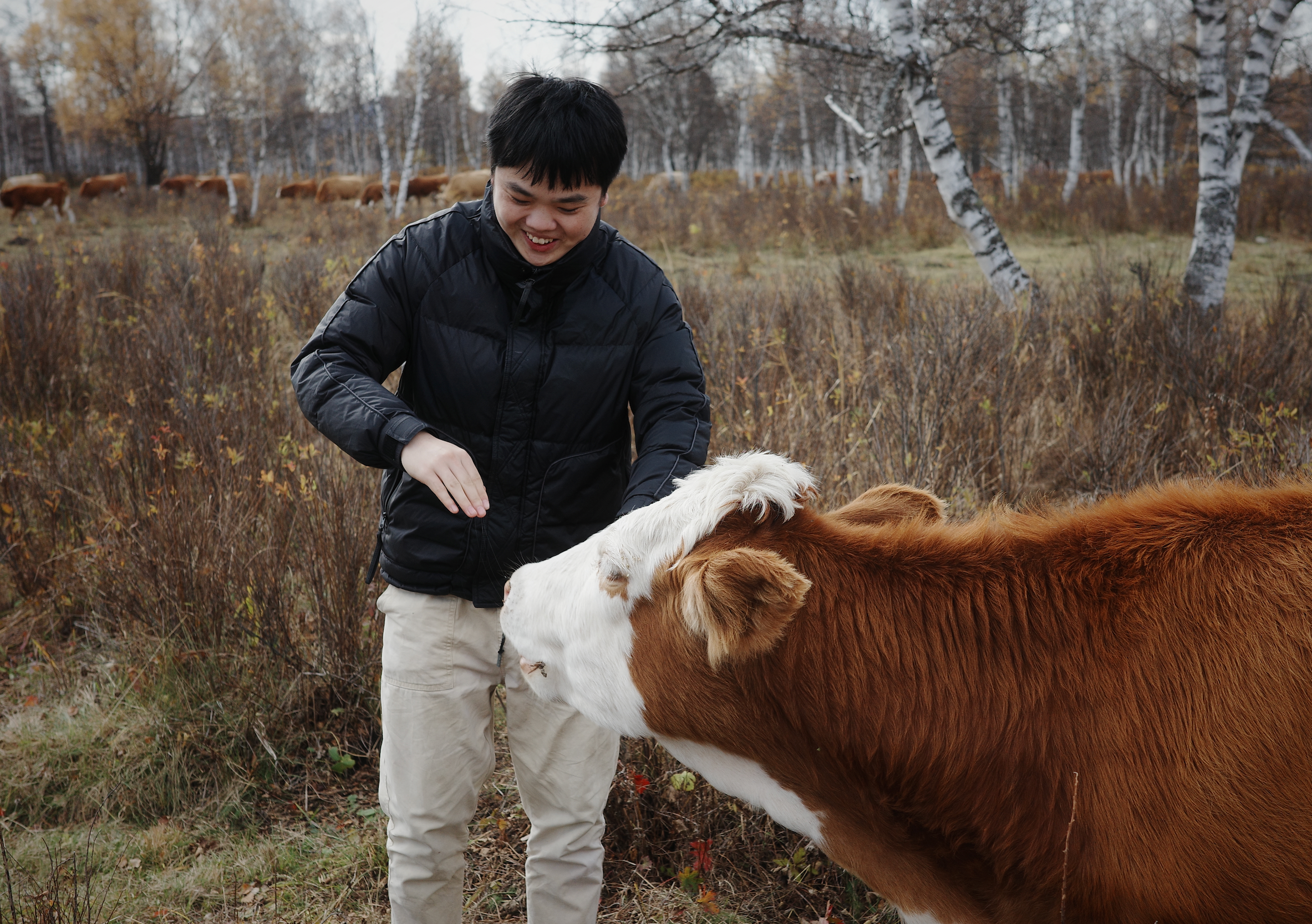 路上又遇到一处牛群,因为刚才玩牛牛被交警赶跑了,所以我们又停下想去玩牛。但是这边的牛子有点胆小,躲好远。