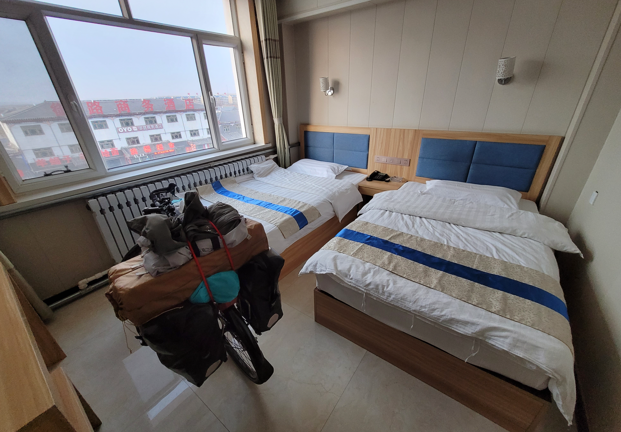 问了一下可以把自行车推到房间里,价格100元一晚上,竟比线上便宜,看来现在确实是淡季,价格都这么随意。