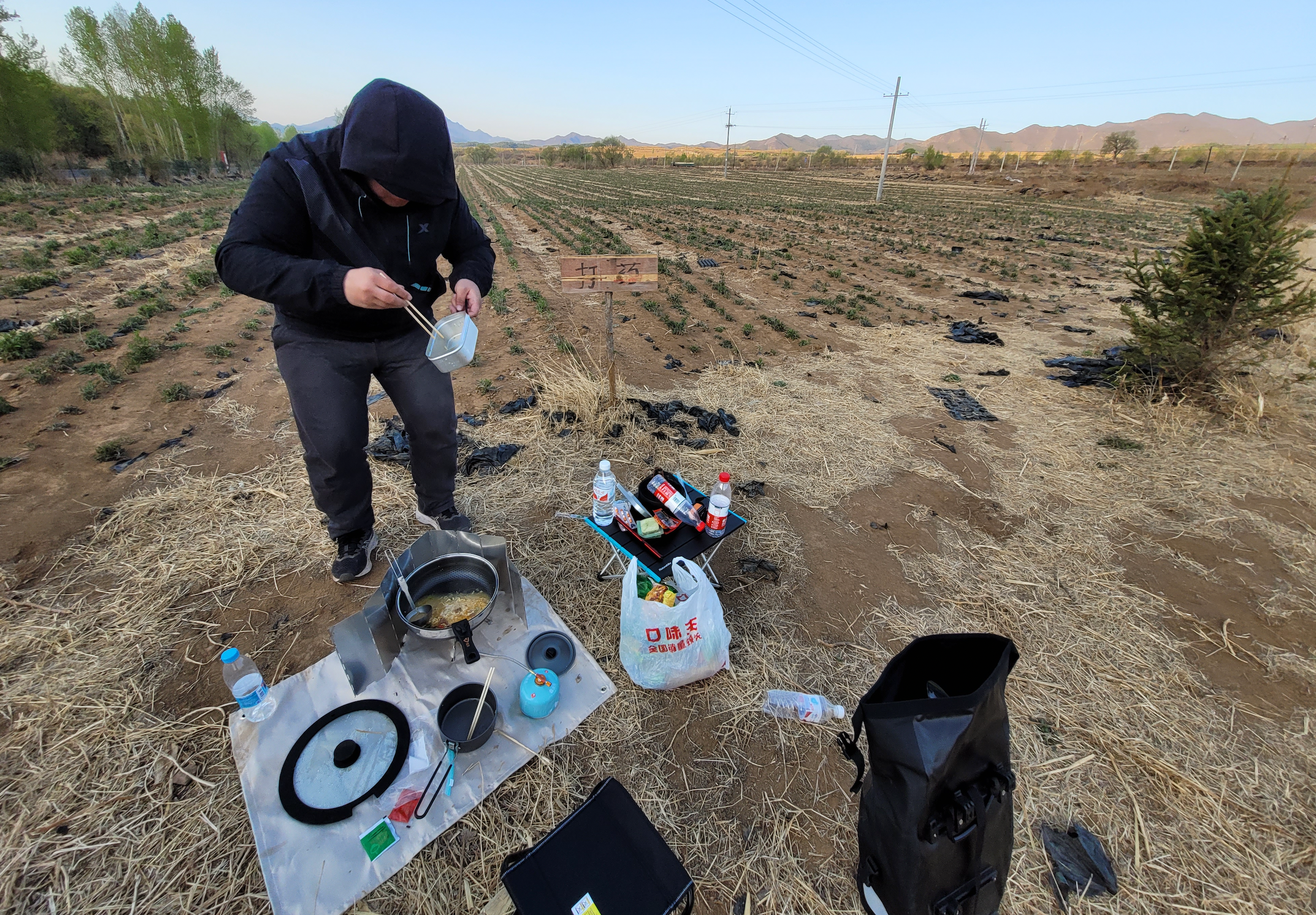 今天时间还早,还要继续往前骑的。不清楚后面上坡多不多,反正骑到太阳落山,到哪就在哪扎营。