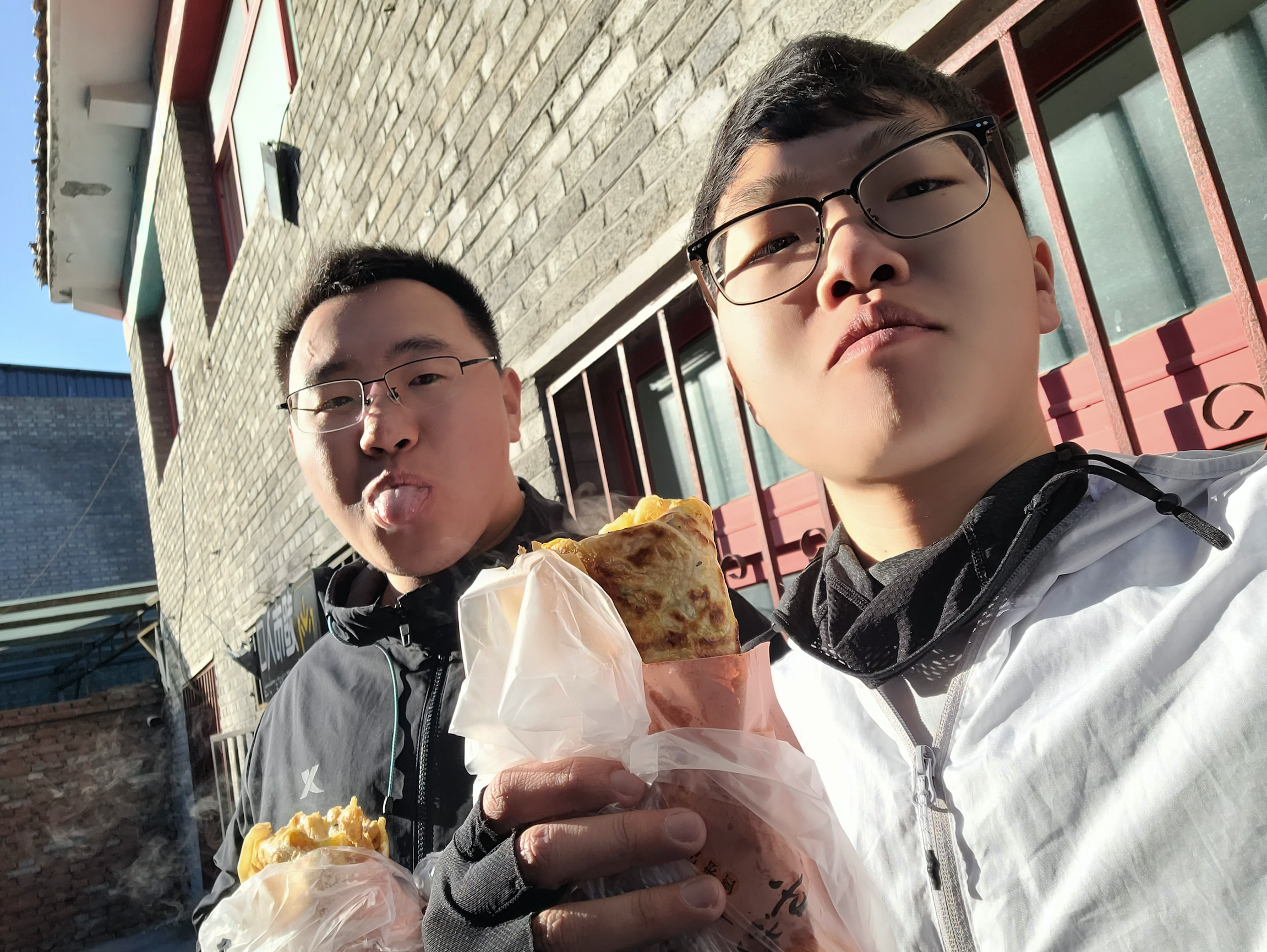 早餐是豪华手抓饼。天气真冷,吃个热乎乎的饼很舒服。