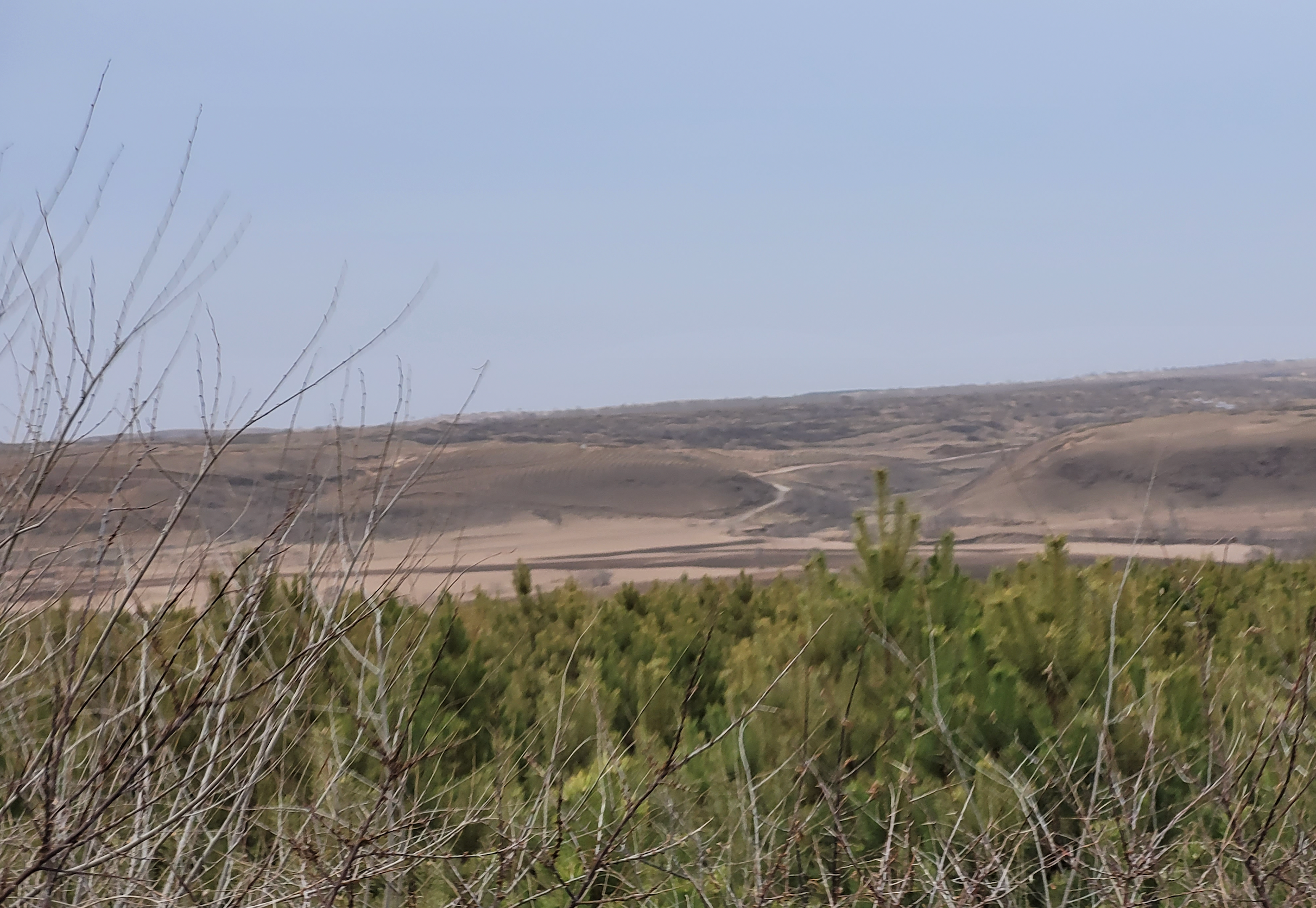 到达御道口,望见远处的草原,和想象中的不一样啊。草都还是黄的。