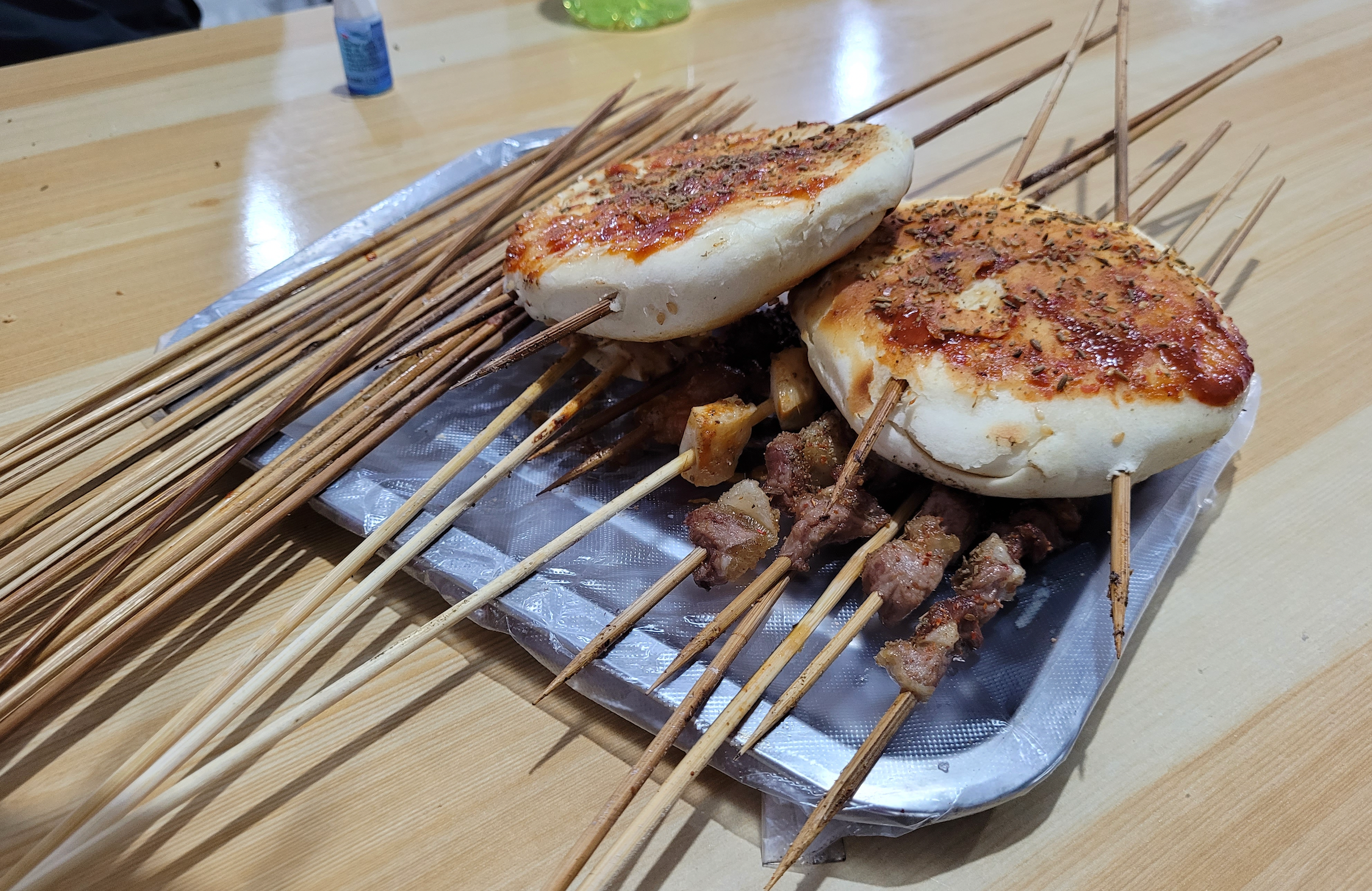 上大街一个人都没有,右手边就是一家烧烤摊,不管太多了,也不准备货比三家,转身就进了烧烤摊开始点菜。