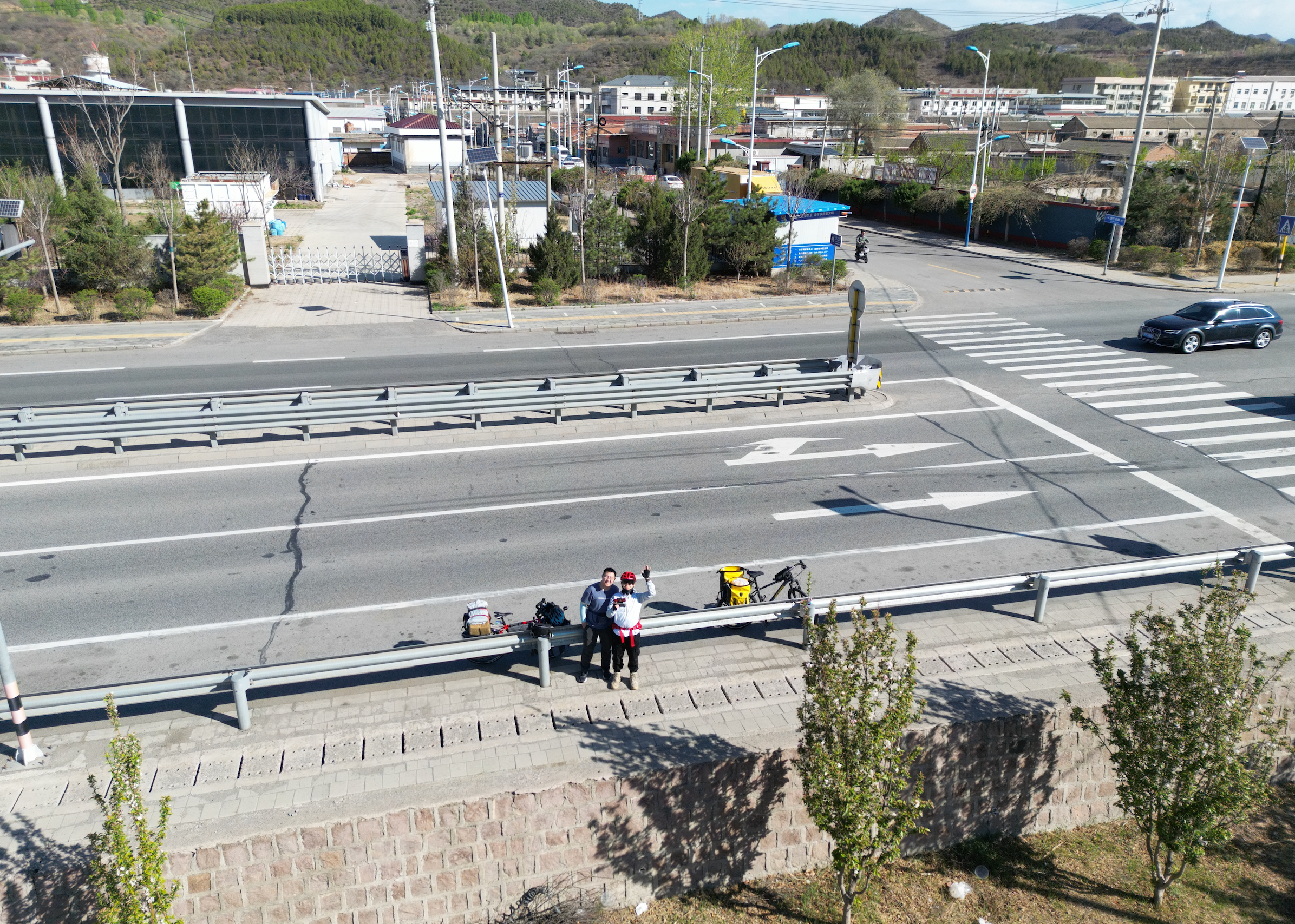 经过汤河口镇,发现昨天计划中露营的公园长满了草,一番荒凉的景象,还好昨天没在此扎营。经过河边的小公园,有平地,人少,所以飞一下无人机。