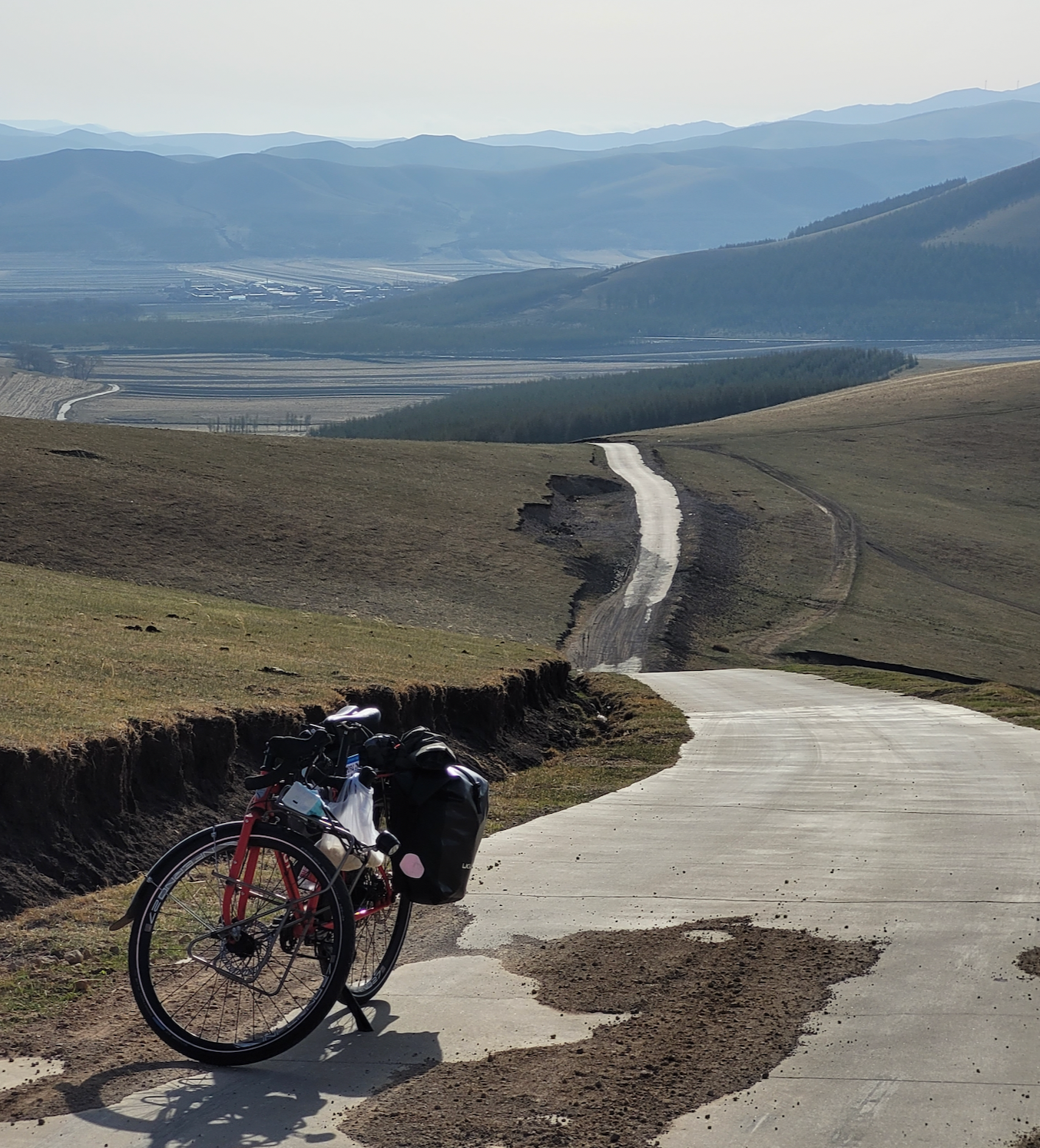 这带地形坡多,我虽然轻装出行,但碰上长坡还是推着走。