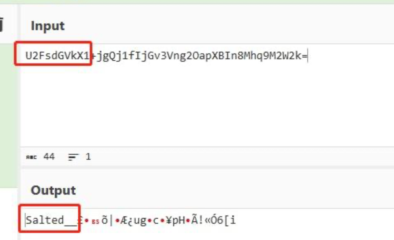 虽然每次加密结果不一致,但开头的一段数据总是U2FsdGVkX1,于是先解base64查看有没有可读的内容。