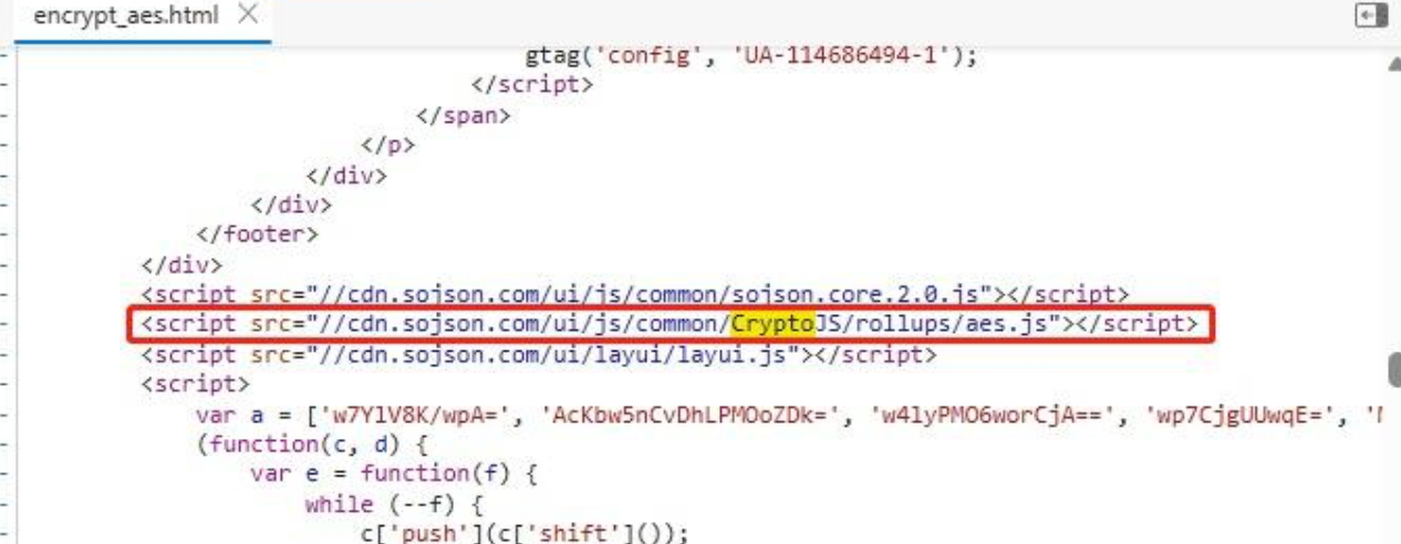 查看网站代码,看样子是使用了一个叫做CryptoJS的第三方库。