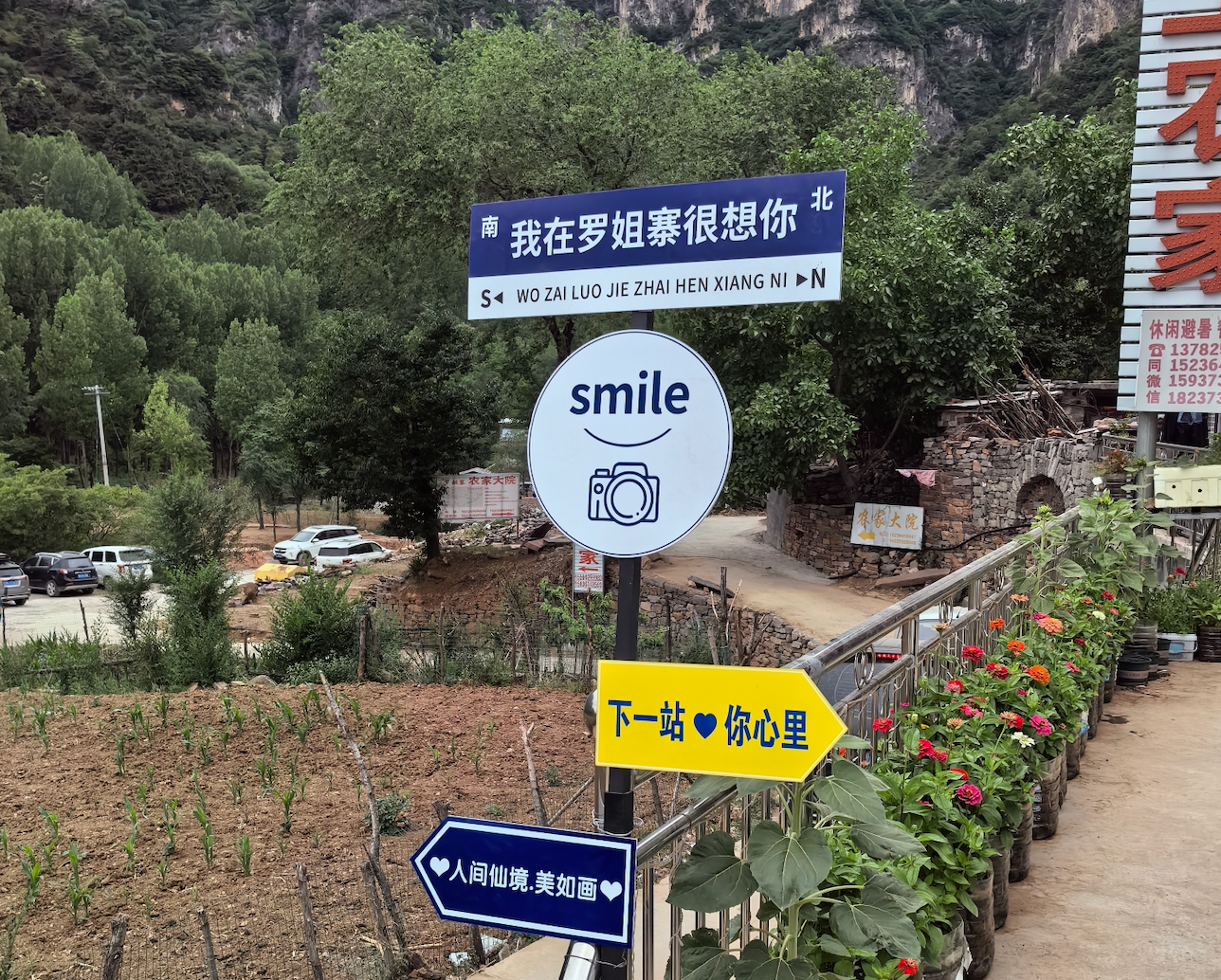土路接着是石路,沿着干涸的河床往下,再经过一条土路,穿进村子里,就进入了郭亮村景区。