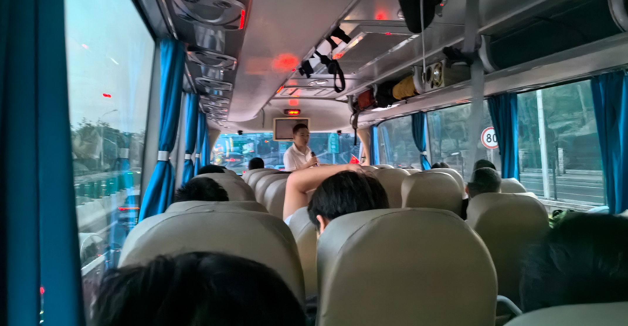 这次的领队叫大波,在车上发言的时候断断续续的,好像了话筒的问题,开始他说的内容我全都没听到。然后就是介绍环节,有人提议,大晚上的,看不见长什么样,不如明天再介绍。